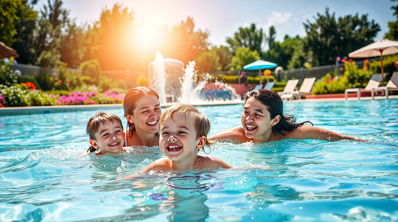 - Types d’installations : piscines chauffées, toboggans multi-niveaux, rivières à courant et aires de jeux aquatiques